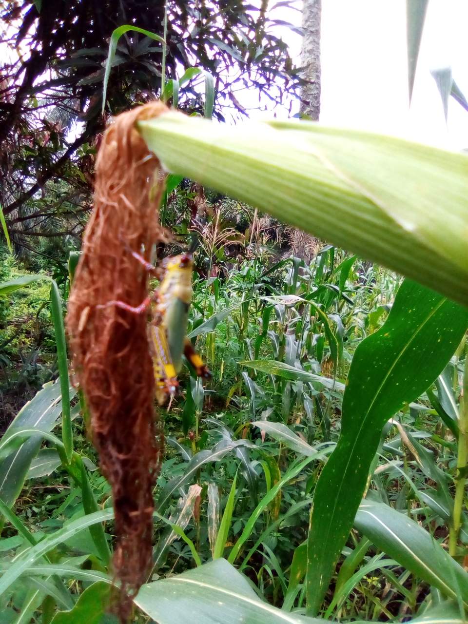 Dear steemian, mazing sharp camera phone to snap photo of grasshopper on maize at my farm Land, welcome to my blog, during am visited my farm am saw grasshopper on maize to stand up I just take my phone to snap it , the insect of grasshopper are below