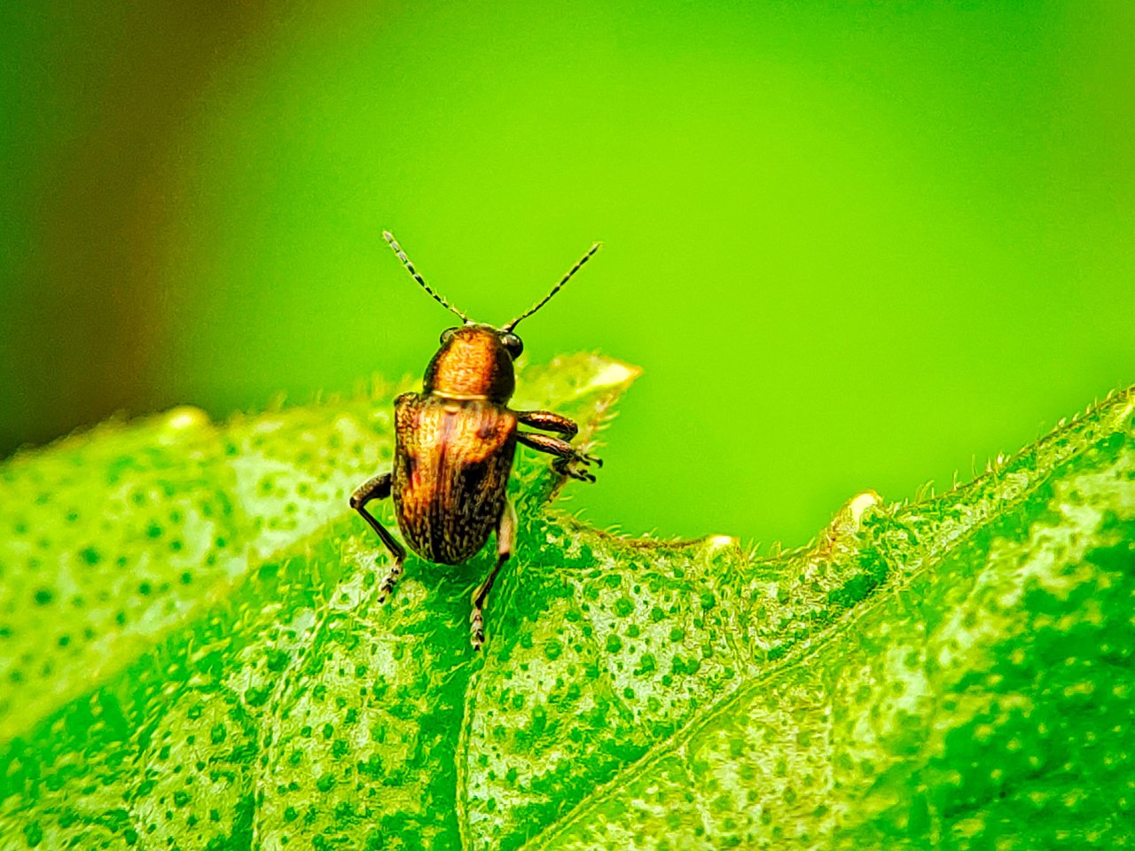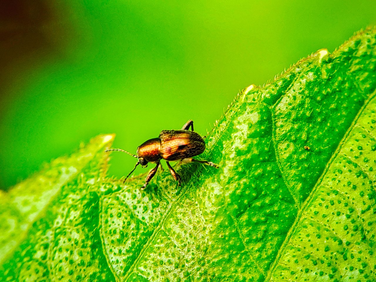 And before I left, I didn't forget to prepare equipment such as a smartphone camera and a macro lens. And at that time, I immediately put them in a small bag that I carry everywhere I go, and when I arrived there, I immediately explored this small forest and suddenly I found a species of grasshopper that looked very beautiful and graceful, and at that time I saw it crawling on one of the wild leaves.