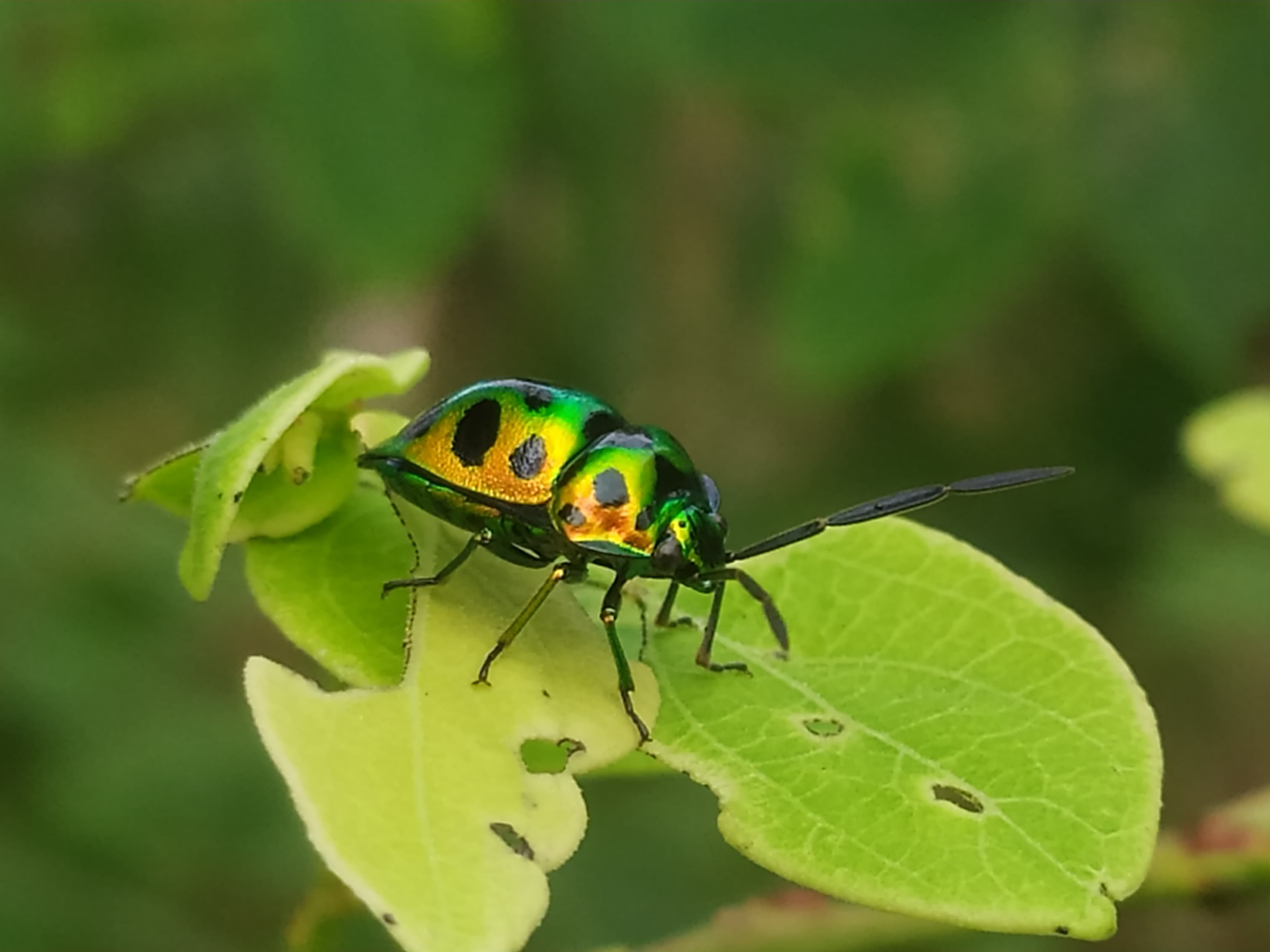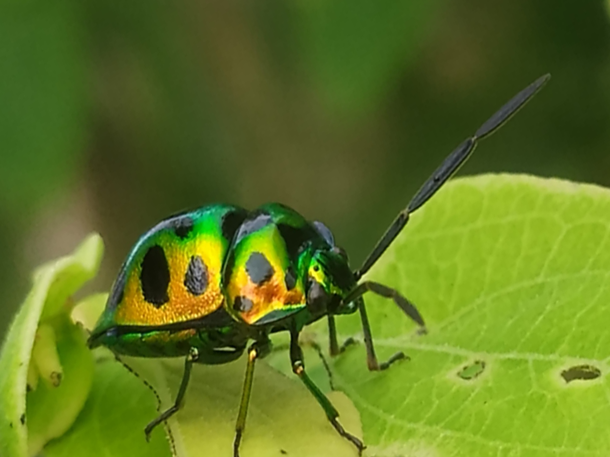 Yesterday, while I was in the garden, I accidentally spotted this beetle standing on a leaf. So, I approached it slowly to prevent it from flying away. I managed to take three photos from different angles. I wanted to take more photos, but the beetle flew off somewhere.