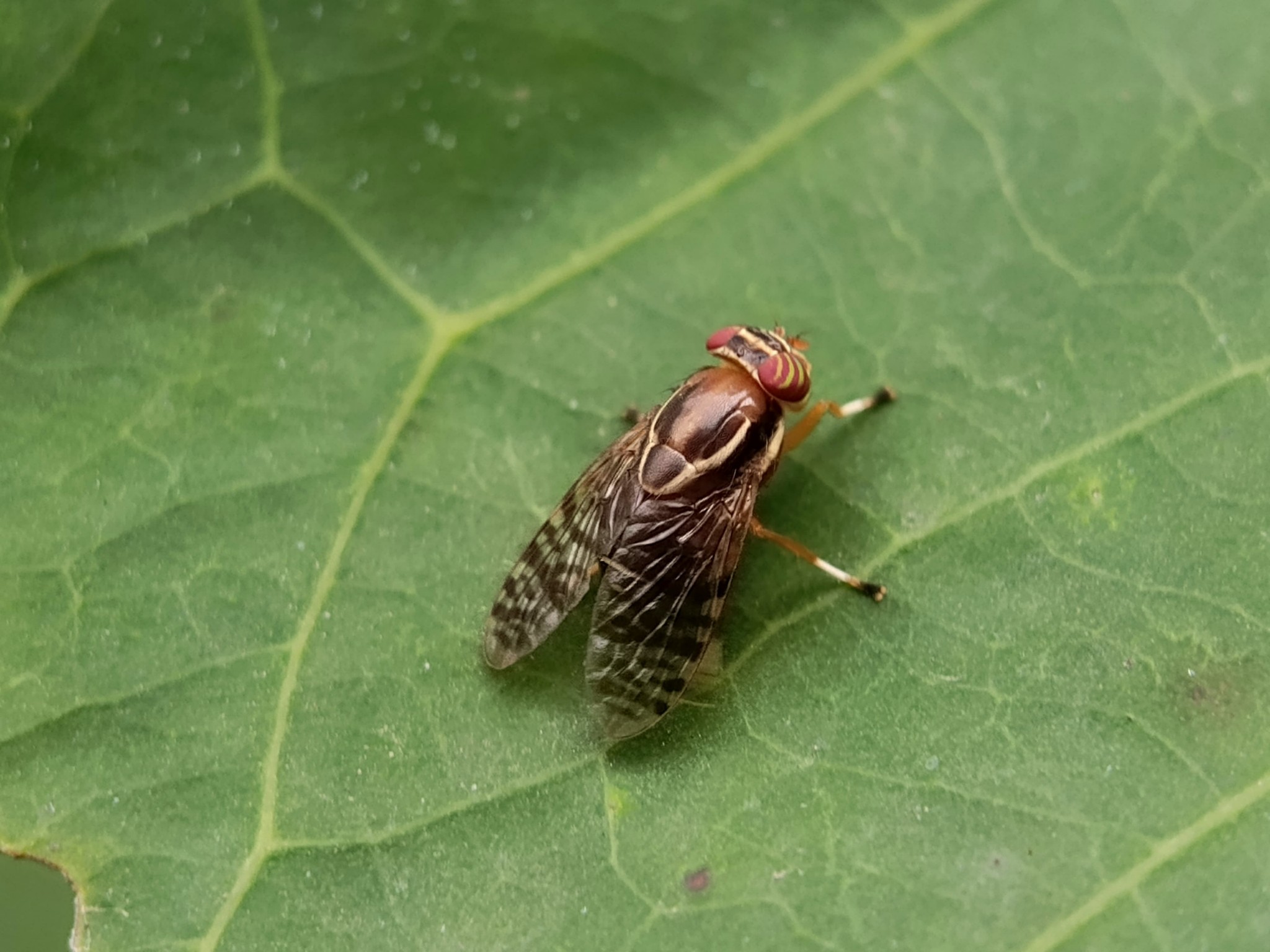 When I was cleaning the water apple tree next to my house, I also managed to find a very unique fly, if you look at its shape, this fly looks the same as flies in general, but try to look at it in terms of color, this fly has a very beautiful color, namely orange, even from a distance I thought this was a bee, and I was so surprised when I realized that this was a fly. In my area this fly is often called a fruit fly, I don't know whether this fly has a dirty nature like other flies or not, but what is certain is that this fly often spends its time on plants and eats rotten fruits. It is very difficult to approach this fly, it is very fast and agile and photographing it becomes a very difficult and annoying thing.
