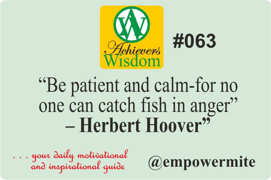 “Be patient and calm-for no one can catch fish in anger” – Herbert Hoover”