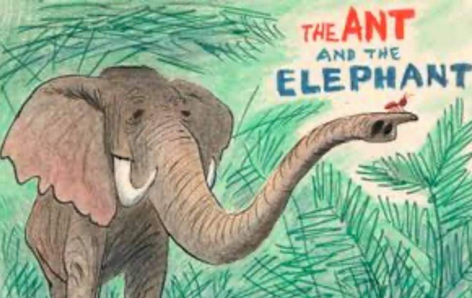The ant took pity on the elephant and came out of his trunk.