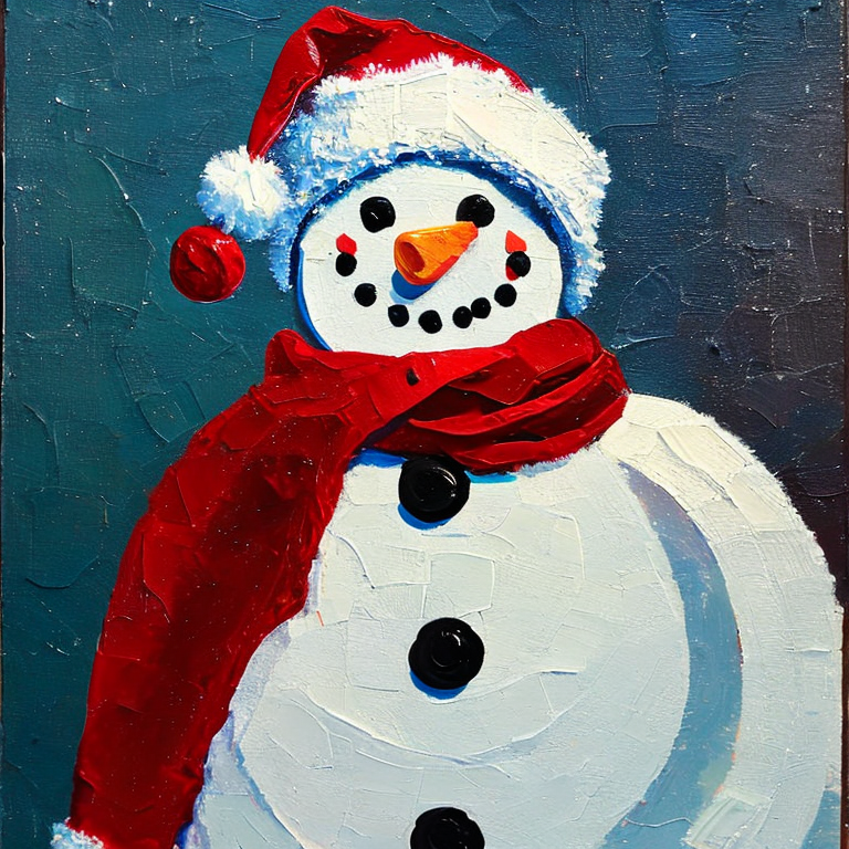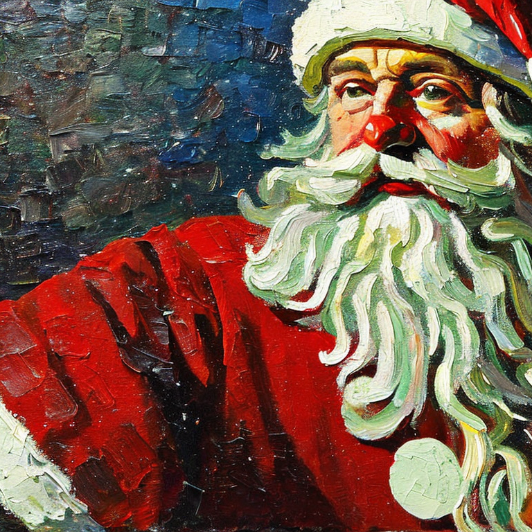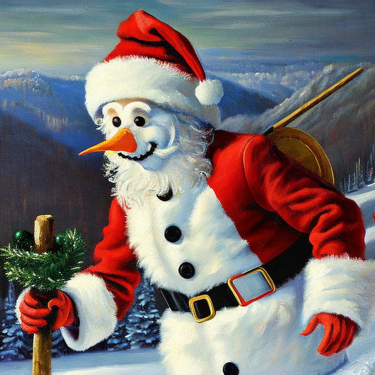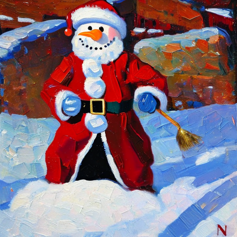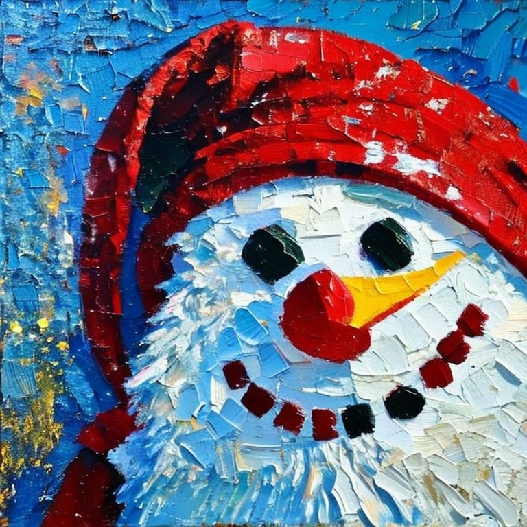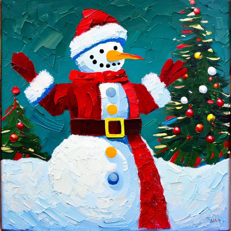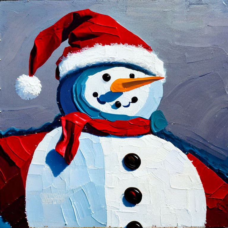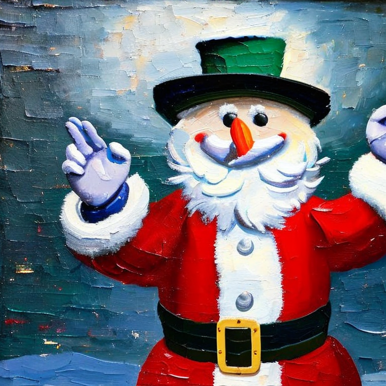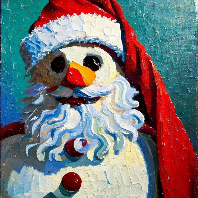 Luego me puse pensar como se verian hechas pintura al óleo y decidí pedir un hombre de nieve vestido de santa claus en pintura al óleo y obuve un resultado muy bello.