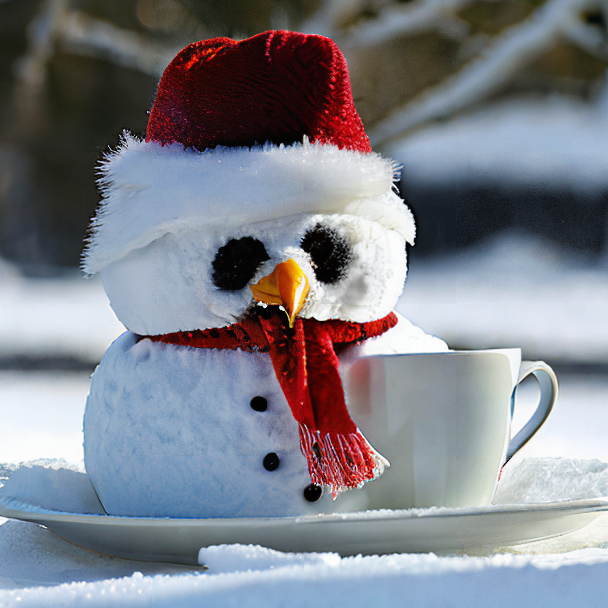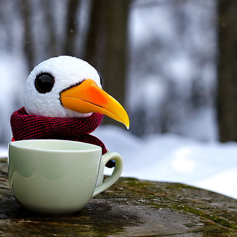 To begin with I must say that the result has been mostly thanks to the negative prompt I have used, since I have been trying several and I can say that this one in general has served me for several generations. And well, today's goal was to get Christmas images and I started with photo realistic images which were these, I asked for a snowman bird drinking coffee and these were the results.