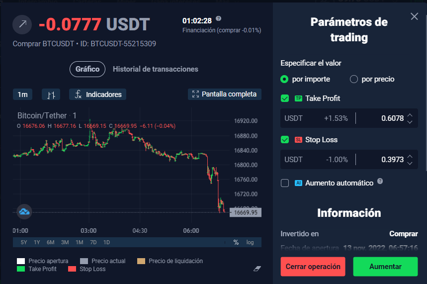 BTC/USDT Entry price: 16 673.62 LONG Leverage x5