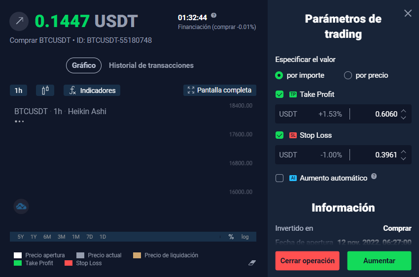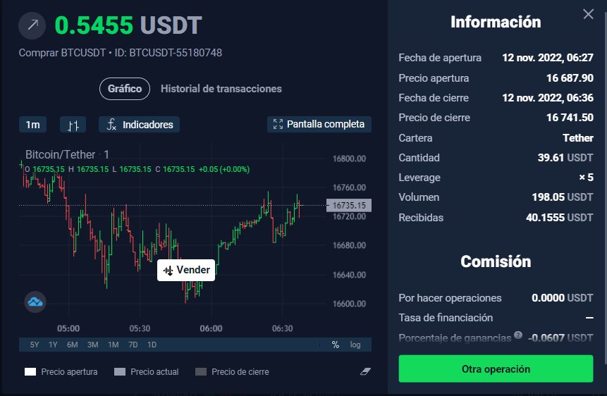 BTC/USDT Entry price: 16 687.90 LONG Leverage x5