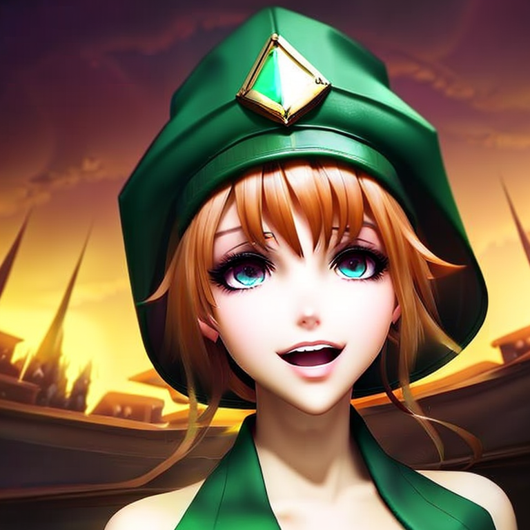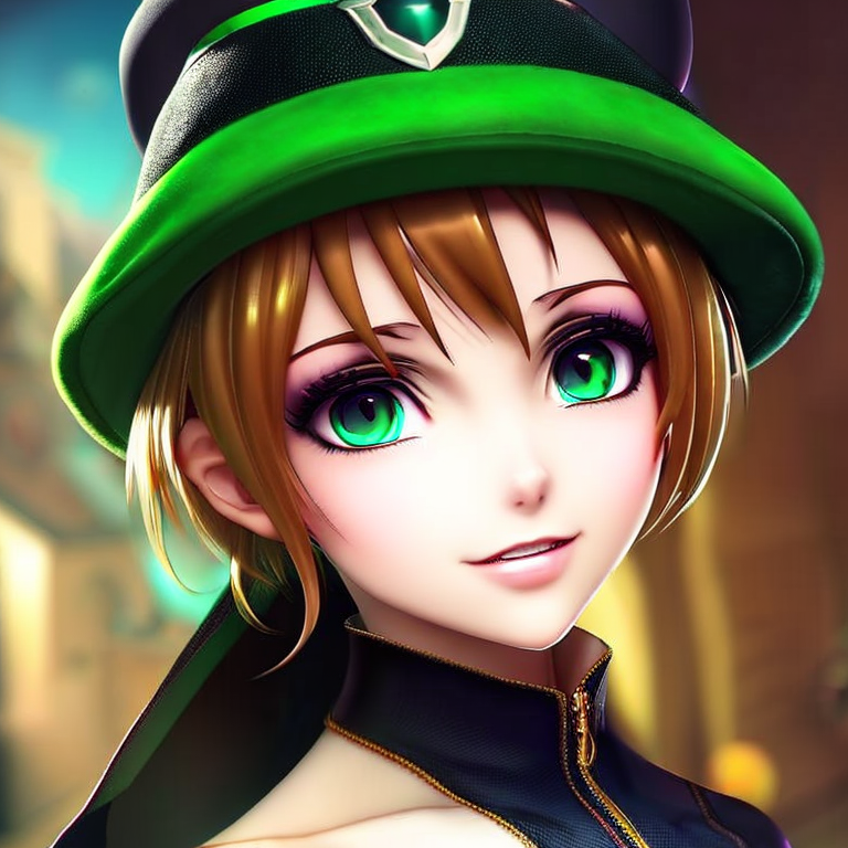 Prompt: The personification of the Halloween holiday in the form of a cute girl with short hair and a villain's smile, ((((cute girl))))cute hats, cute cheeks, unreal engine, highly detailed, artgerm digital illustration, woo tooth, studio ghibli, deviantart, sharp focus, artstation, by Alexei Vinogradov bakery, sweets, emerald eyes