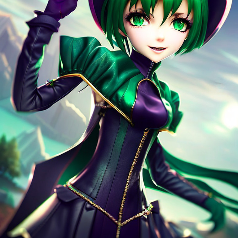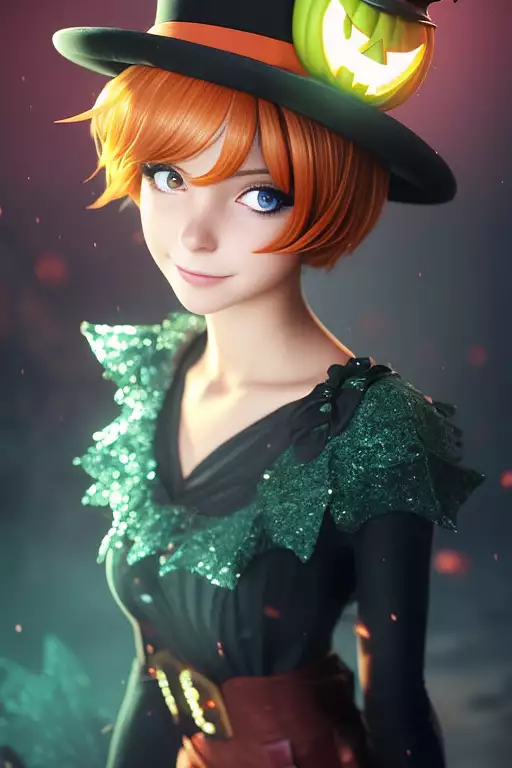 Prompt: The personification of the Halloween holiday in the form of a cute girl with short hair and a villain's smile, (((cute girl)))cute hats, cute cheeks, unreal engine, highly detailed, artgerm digital illustration, woo tooth, studio ghibli, deviantart, sharp focus, artstation, by Alexei Vinogradov bakery, sweets, emerald eyes