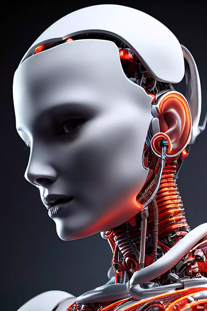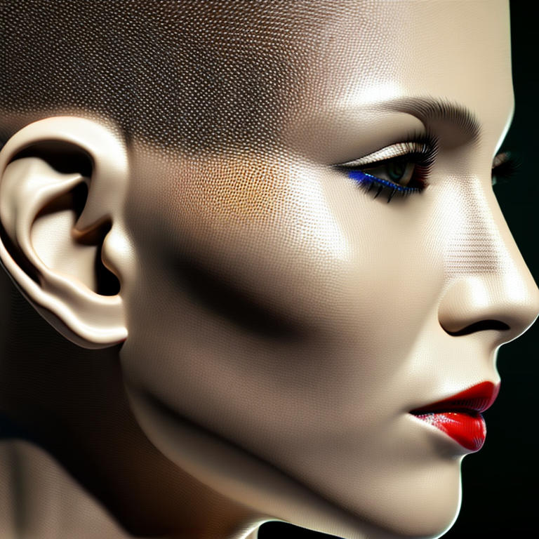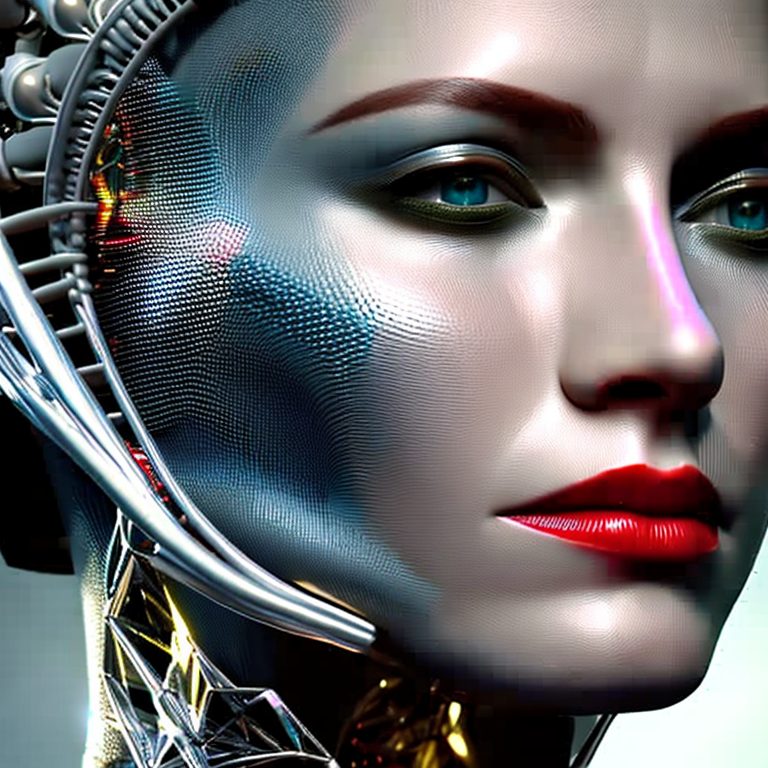 Prompt: complex 3d render ultra detailed of a beautiful porcelain profile woman android face, cyborg, robotic parts, 150 mm, beautiful studio soft light, rim light, vibrant details, luxurious cyberpunk, lace, hyperrealistic, anatomical, facial muscles, cable electric wires, microchip, elegant, beautiful background, octane render, H. R. Giger style, 8k