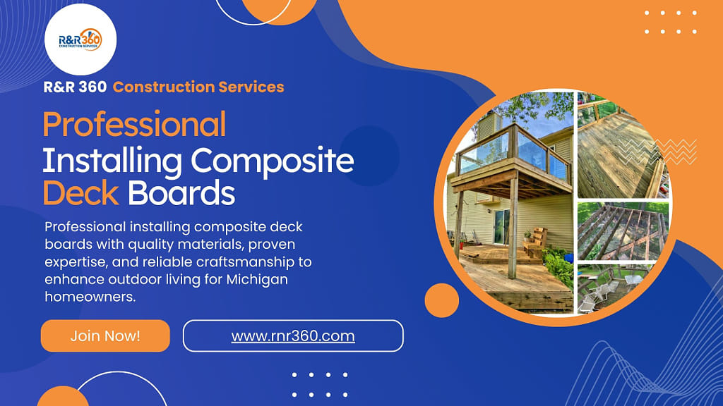 R&R 360 Construction Services excels at installing composite deck boards to build durable, low-maintenance Trex composite decks that elevate outdoor living spaces across Michigan. Our licensed and experienced team uses quality materials and proven techniques to ensure long-lasting performance, expert craftsmanship, and clear communication from start to finish. Trust our reliable deck builders to create outdoor spaces you’ll enjoy for years.