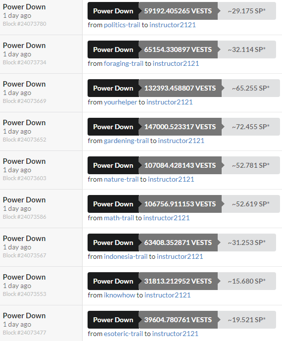 You can see all of these accounts here. All of the posts get almost no votes until the posts are 6 days old, then they're all voted on by instructor2121.
