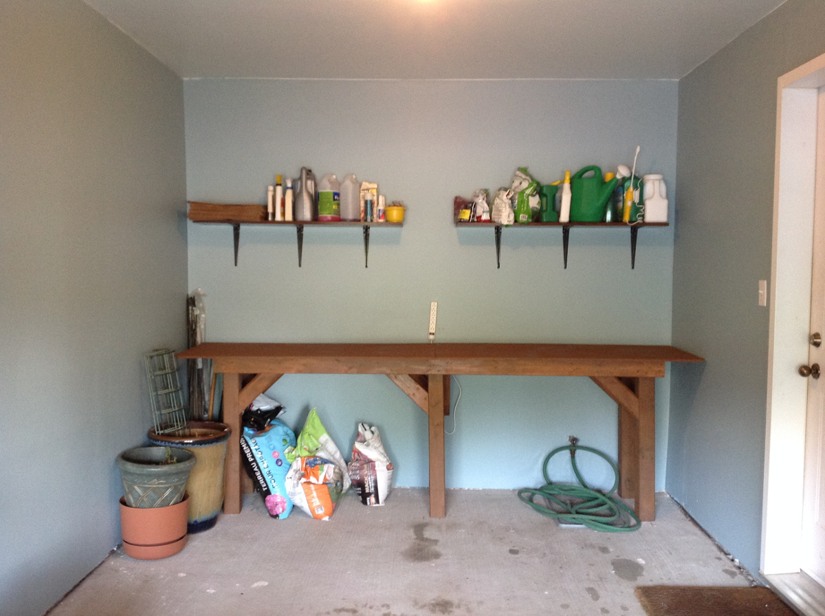 Voilà! At this point, the only other thing I can foresee is a strip of LED lights under the shelves. Well... I could move the gardening tools to that empty wall on the left, and do something about the floor and... it never ends, does it?
