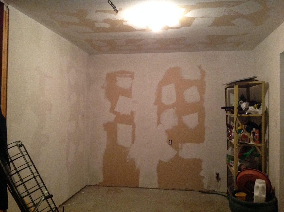Here is how it looked after I cleared stuff out and after the drywall had been taped and skimmed.