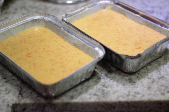 Mientras tanto vamos pre-calentando el horno a 180°C. Engrasamos y enharinamos un molde para tortas de aluminio o un bol de vidrio especial para hornos, en mi caso o usé moldes de aluminio desechables, puedes usar el que tengas o el de tu preferencia. Ahora procedemos a agregar la mezcla y la introducimos al horno durante una hora o unos minutos más, todo depende del horno que estés usando.