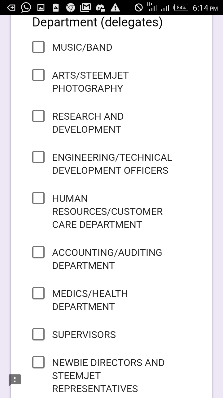 Department: Click on the department you belong, if you don't have a department yet. Just click on others or just leave it blank.