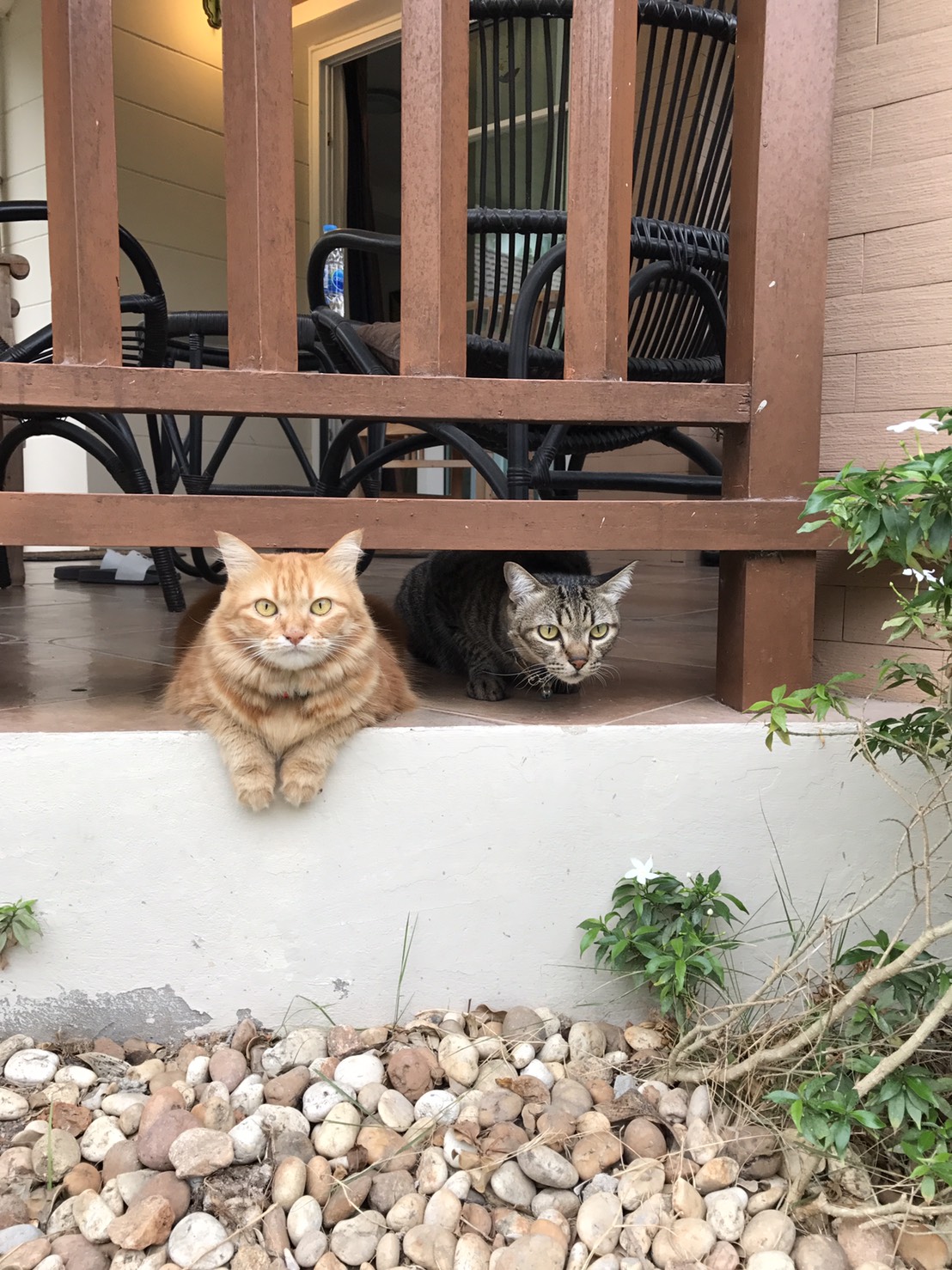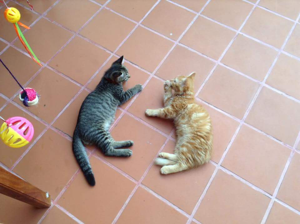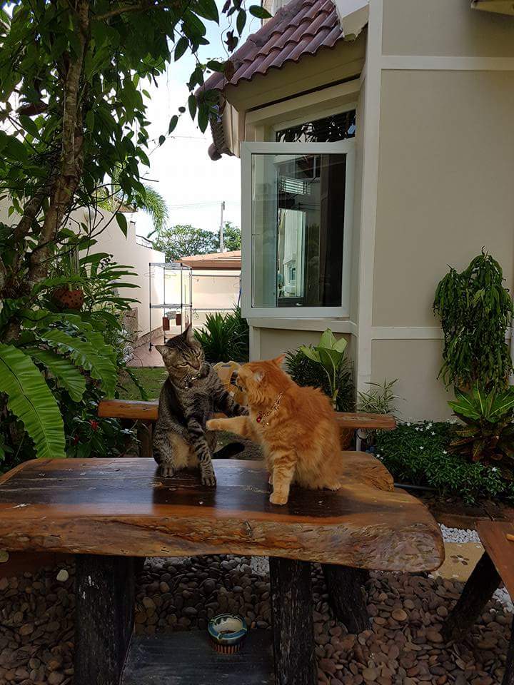 My paws are name Murphy and Deedo.I got them in 2014 and I got from neighbor.they had 4 kittens.the first cat is Thai-Persian cat.The color is light brown and she have a little dots.The second cat is Thai cat.His color is black.The third cat is Thai cat.His color is black and he have a little dots.The last cat is Thai cat.Her color is light brown.So I chose The first and third one.I give their name Murphy for the first cat and Deedo for the third cat.