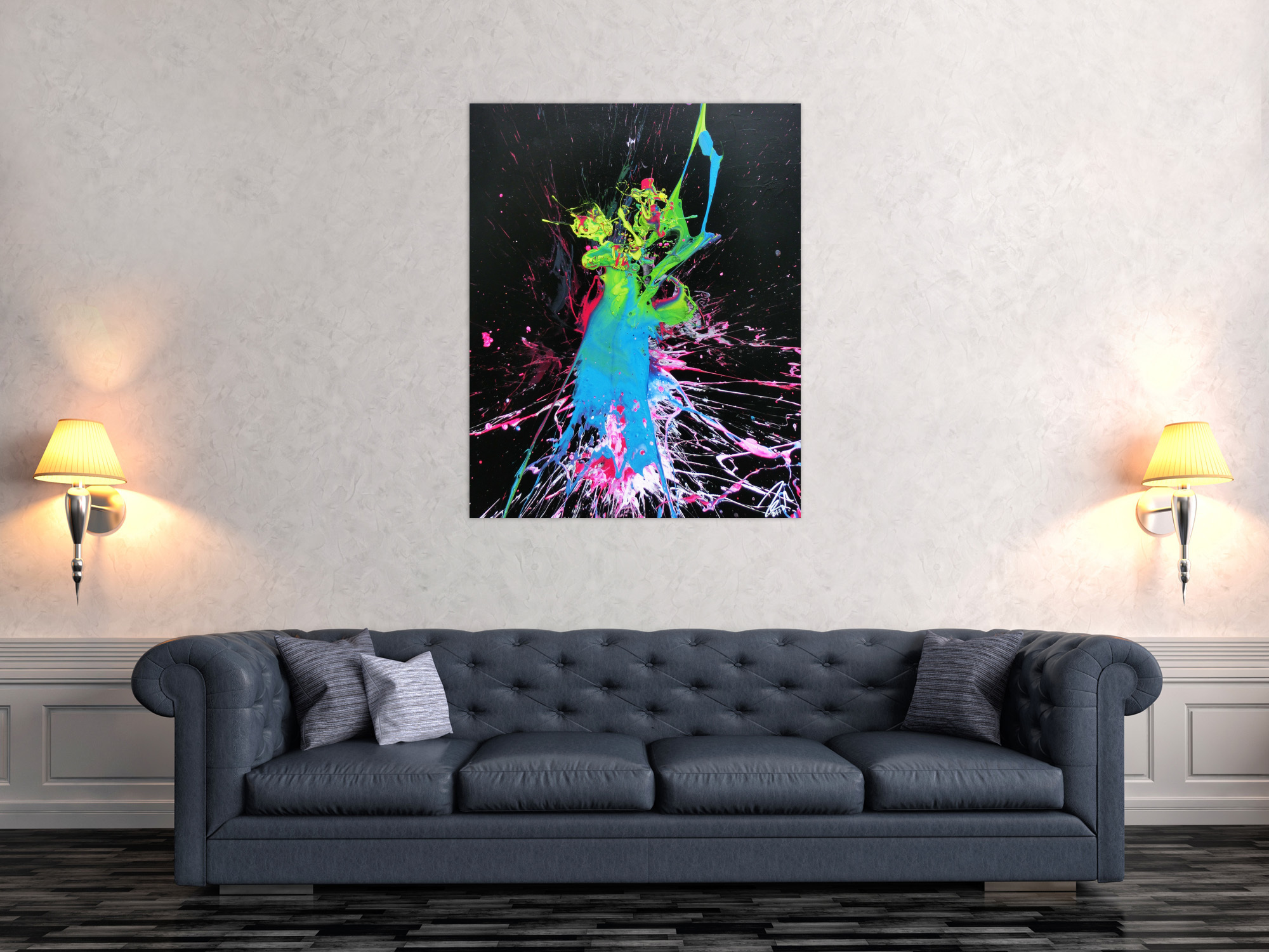 This painting has the size of 170x240cm and is still not the largest i have created. The materials are Acrylic on canvas.