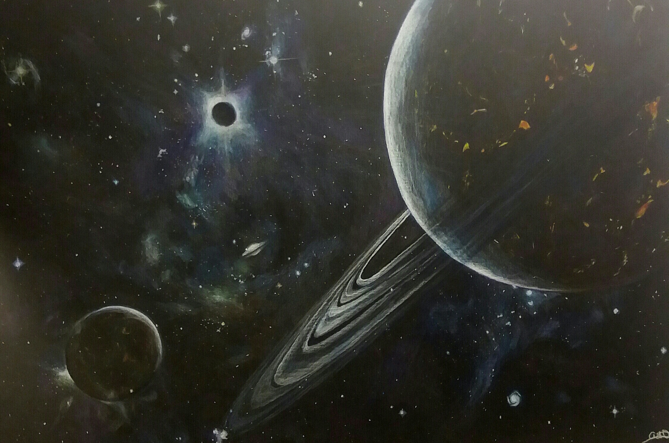 This was one of the many drawings that I've made in the past. I tried a lot of different things such as realistic portraits, but also more cartoon-ish drawings and designing characters which was a lot of fun! This drawing I "very originally" called the multiverse haha! It's made with color pencils on black paper. Let me know what you think :)