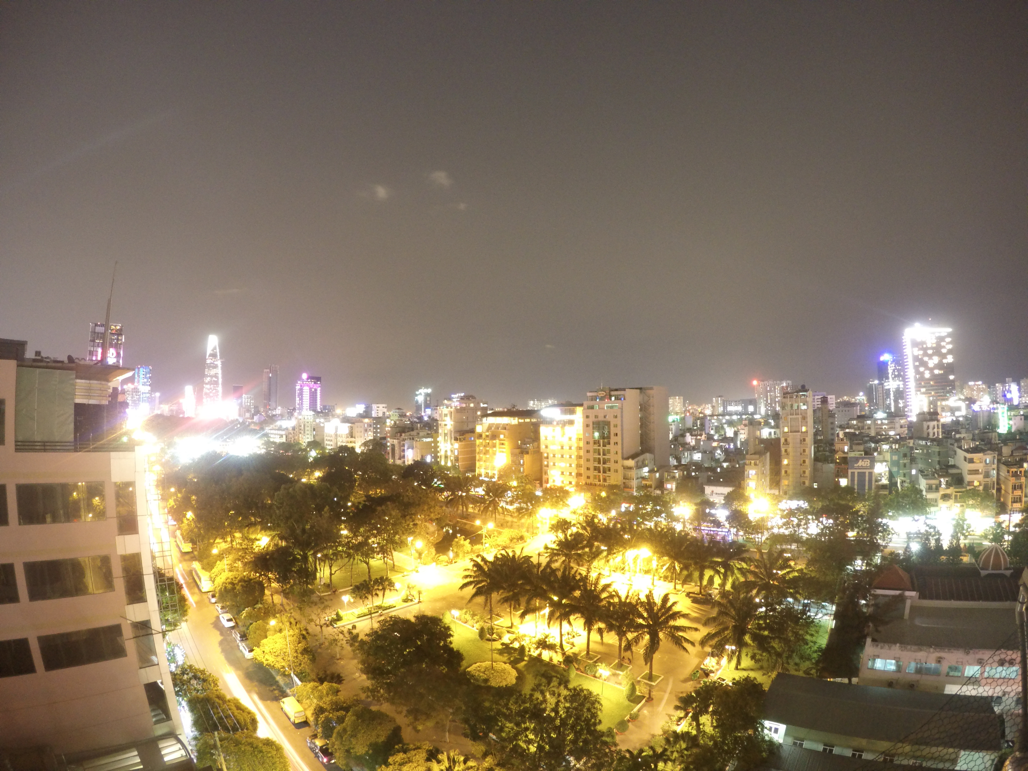 The Beautyful View over the Saigon Central Park from the Rooftop Bar on the Saigon Inn,