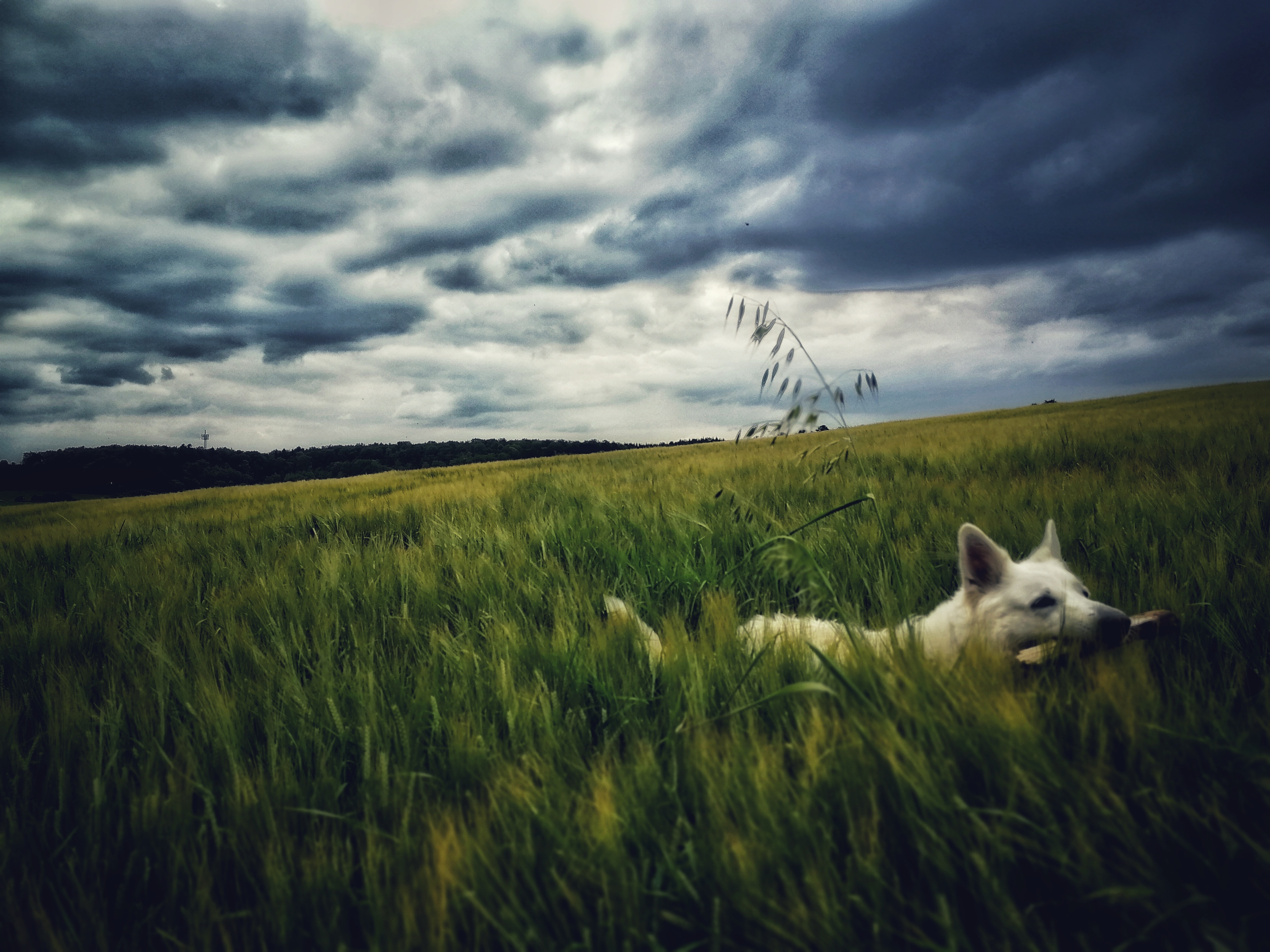 A beautyful white German Shepherd in a Field in Southern Germany