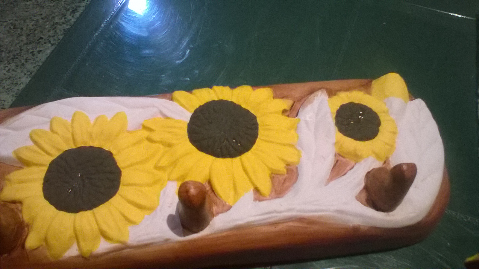 #1- utilizar un biscocho de girasoles, el cual lijamos si tiene alguna imperfeccion y lo limpiamos con un paño húmedo.