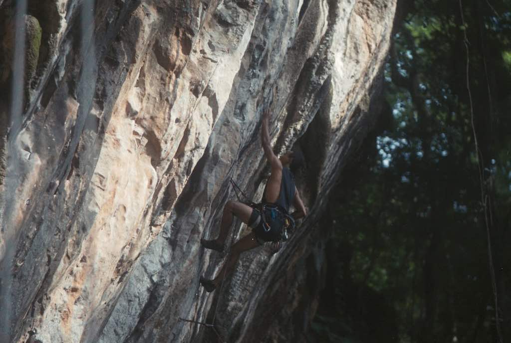 En esta otra fotografía me encuentro escalando la ruta Rosas Azules un 5.12a de dificultad