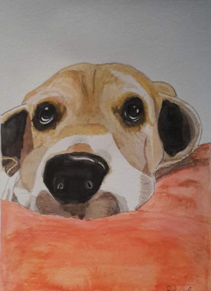Hi, I'm blueslee. I'm a creative person... I live in a world of watercolors, drawings, music, diy and gardening. Am I an artist? Maybe a kinda, if anyone who creates something can be call an artist. In this image you can see my little dog, Lizzie. She passed away about 2 months ago and this is how I painted her in watercolours. If you like, visit my instagram profile @blueslee_art and follow me. Bye! 😊