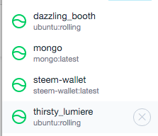 Note Should you disconnect and need to re-connect, you can do it in Kitematic by finding your created docker instance in the list. Note the name as if you accidentally create another instance it will have a new name.