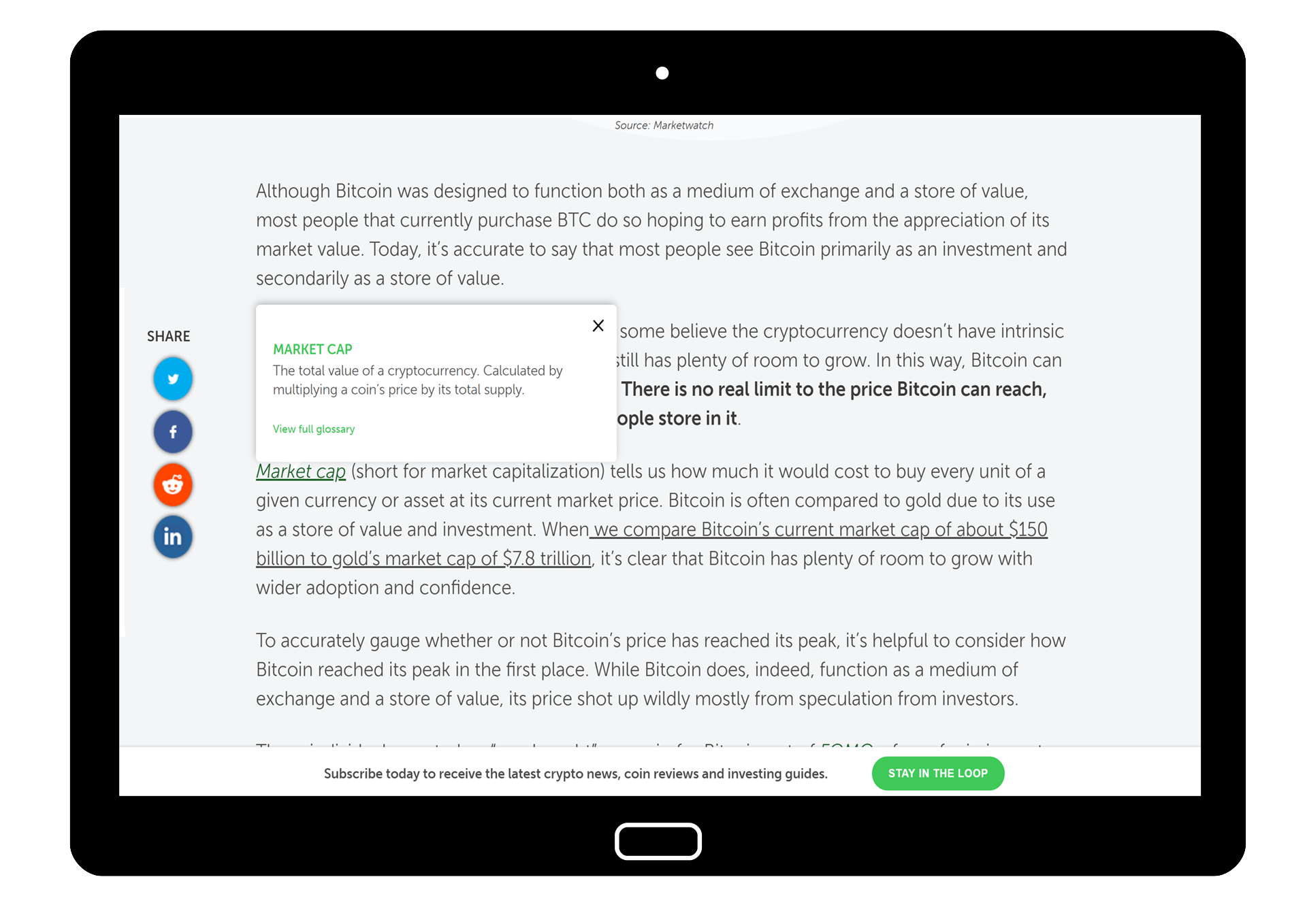 Another super cool feature about our glossary is that it helps us make our content better and more approachable. Any time we write a blog, course, coin review, or anything else with a glossary term in it, we link that glossary term so that its meaning appears when you hover over it.