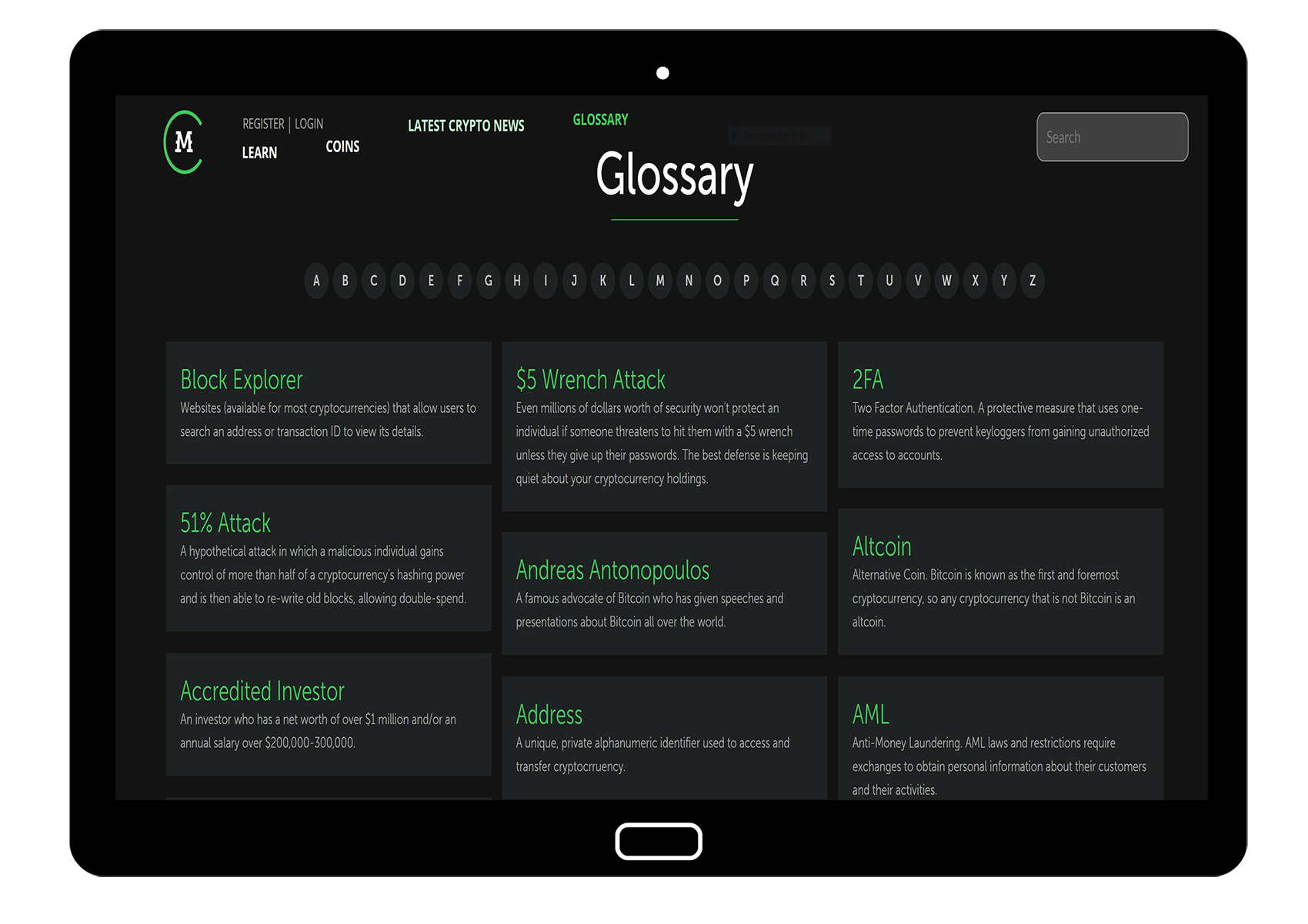 One of our most innovative features is our glossary. Crypto is filled with unfamiliar words, terms, and phrases that can leave even experienced crypto investors running to Google for help. With our glossary, you’ll never need to ask Google again.