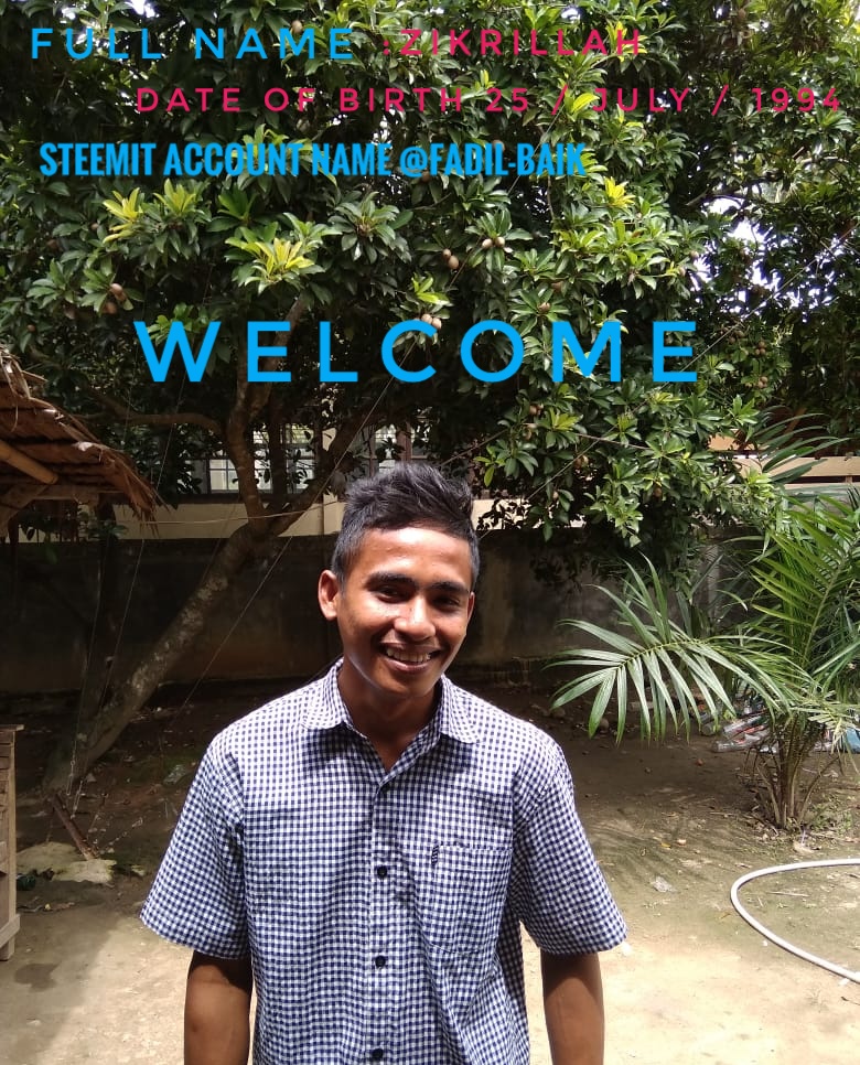 introduce my name Zikrillah, and the name of my steemit account is @fadil-baik. born on 25 / July / 1994. and the country that I live in is Indonesia [Aceh]. And I have been given the opportunity to join Steemit social media, on 04 / September / 2018. And this is my first introduction to the name @fadil-baik.