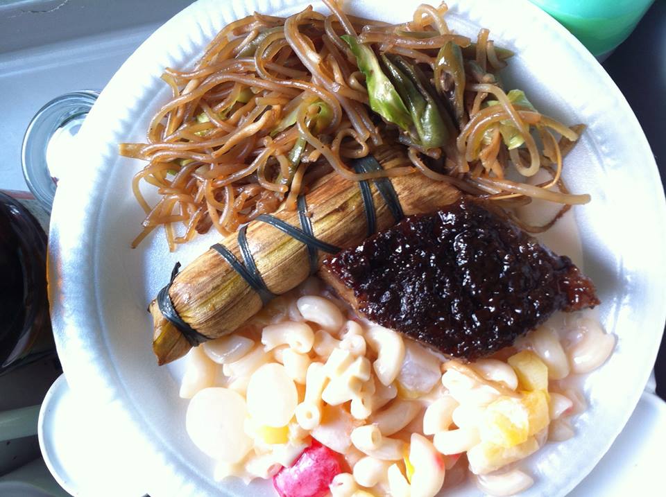 The most popular Filipino noodle dish Pansit, with Suman, rice cake and Macaroni salad. HEAVEN.