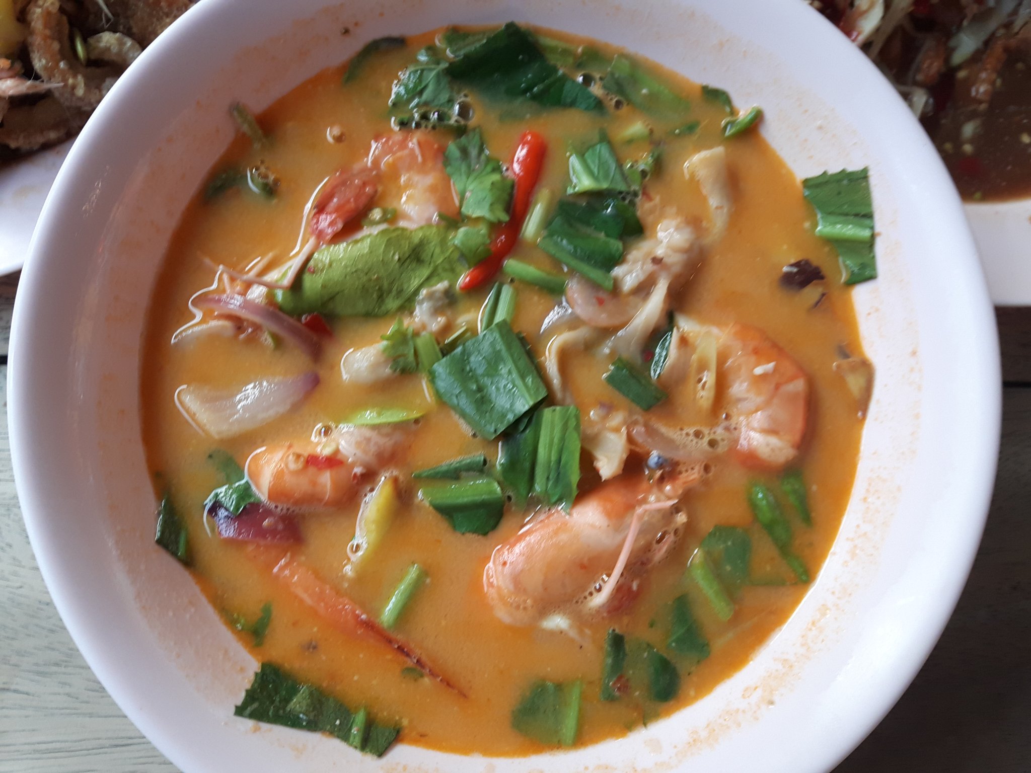 Tom Yum Kung. I like eating with rice. The taste is spicy. It is famous dish for visitors who visit Thailand, too.
