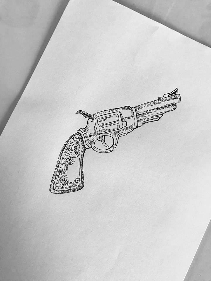 You certainly have some drawing skills. I like that pistol and would love to see more.