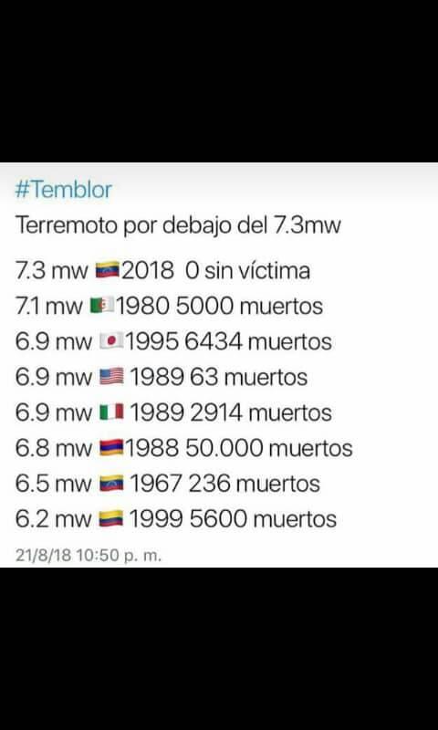 Si nos podemos dar cuenta en otros paises terremotos y catastrofes como esta conllevan muerte en masas y desastres sin reparo y ver que mi pais no tuvo ningun numero de bajas en vidas, me da a demostrar que en el Dios que creo tiene su mirada puesta en mi pais.