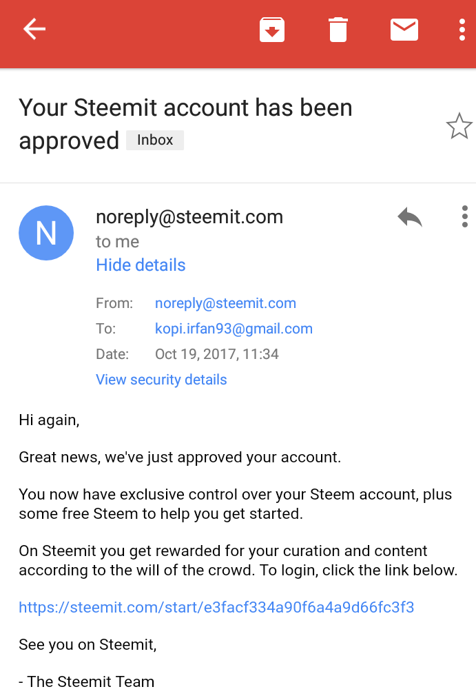 terhitung mulai tgl 19 Oktober 2017 akun #Steemit saya di approved