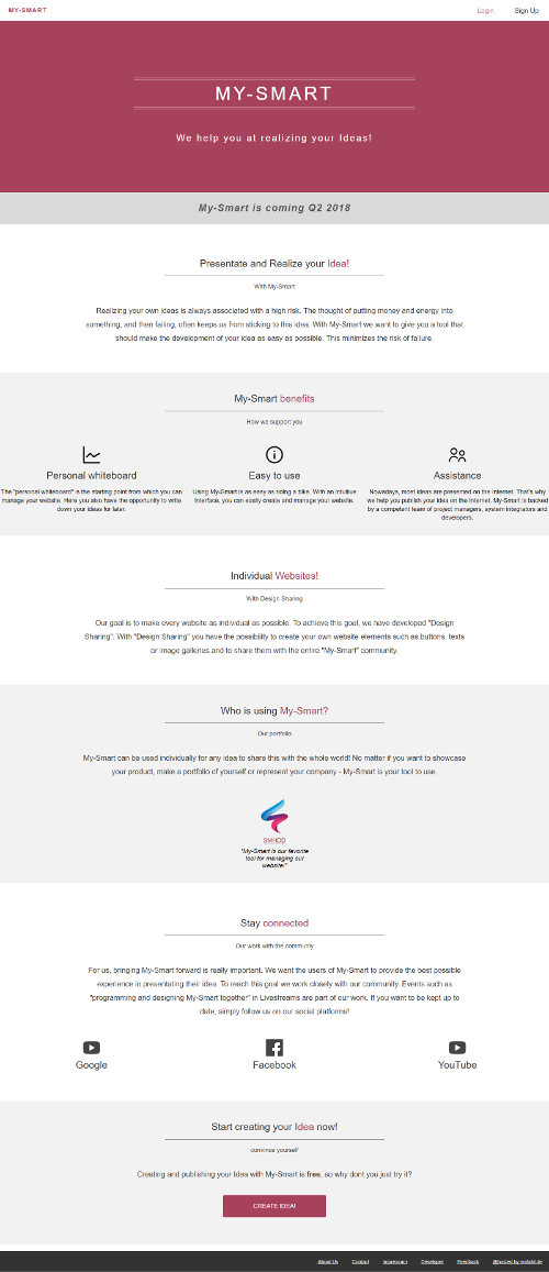At the same time I'm also working on my first big project - "My-Smart". A website that makes it easy for people to share their projects and ideas with the world.