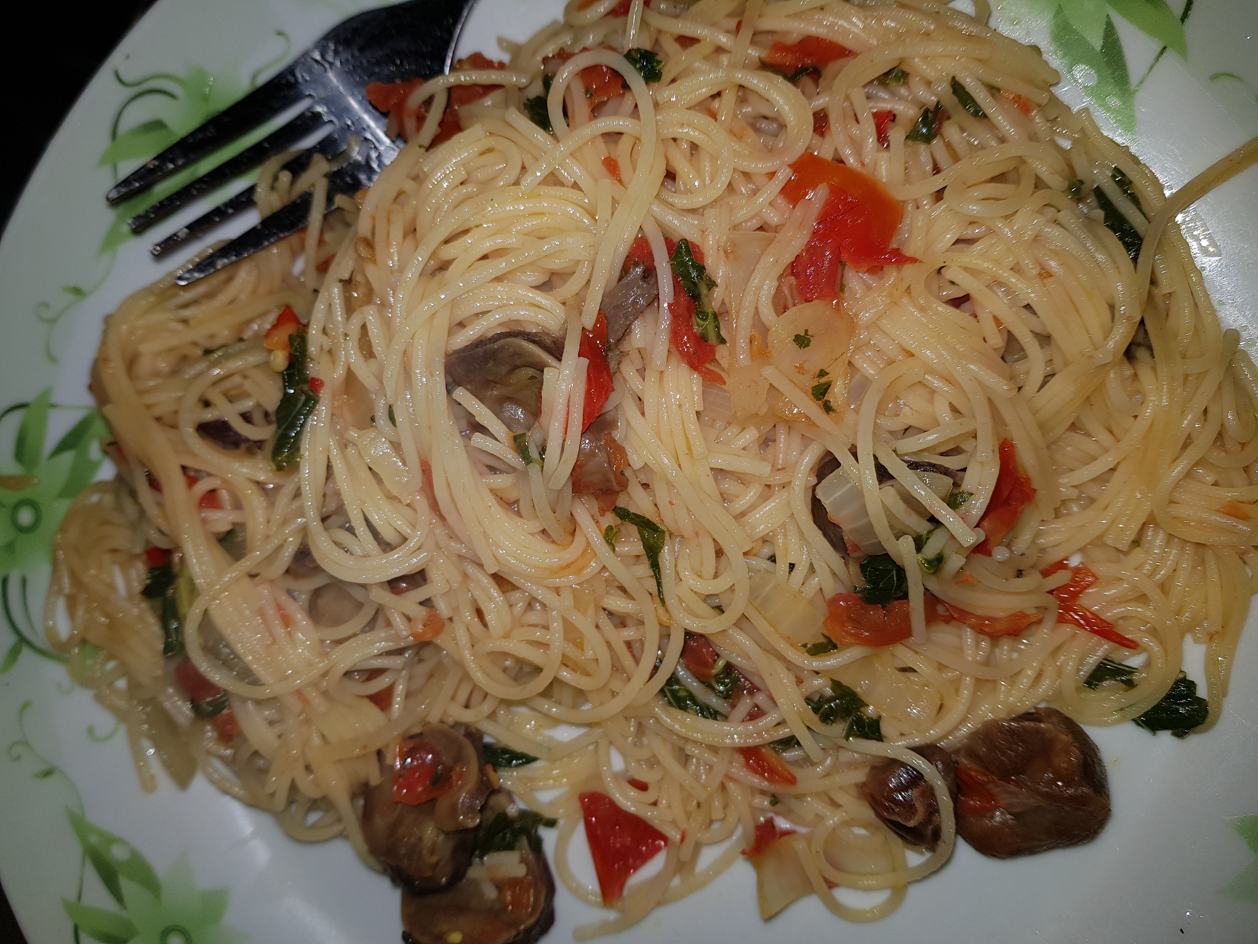 Step 1: cut the spagetti into a pot of water, add some salt and boil till its cooked