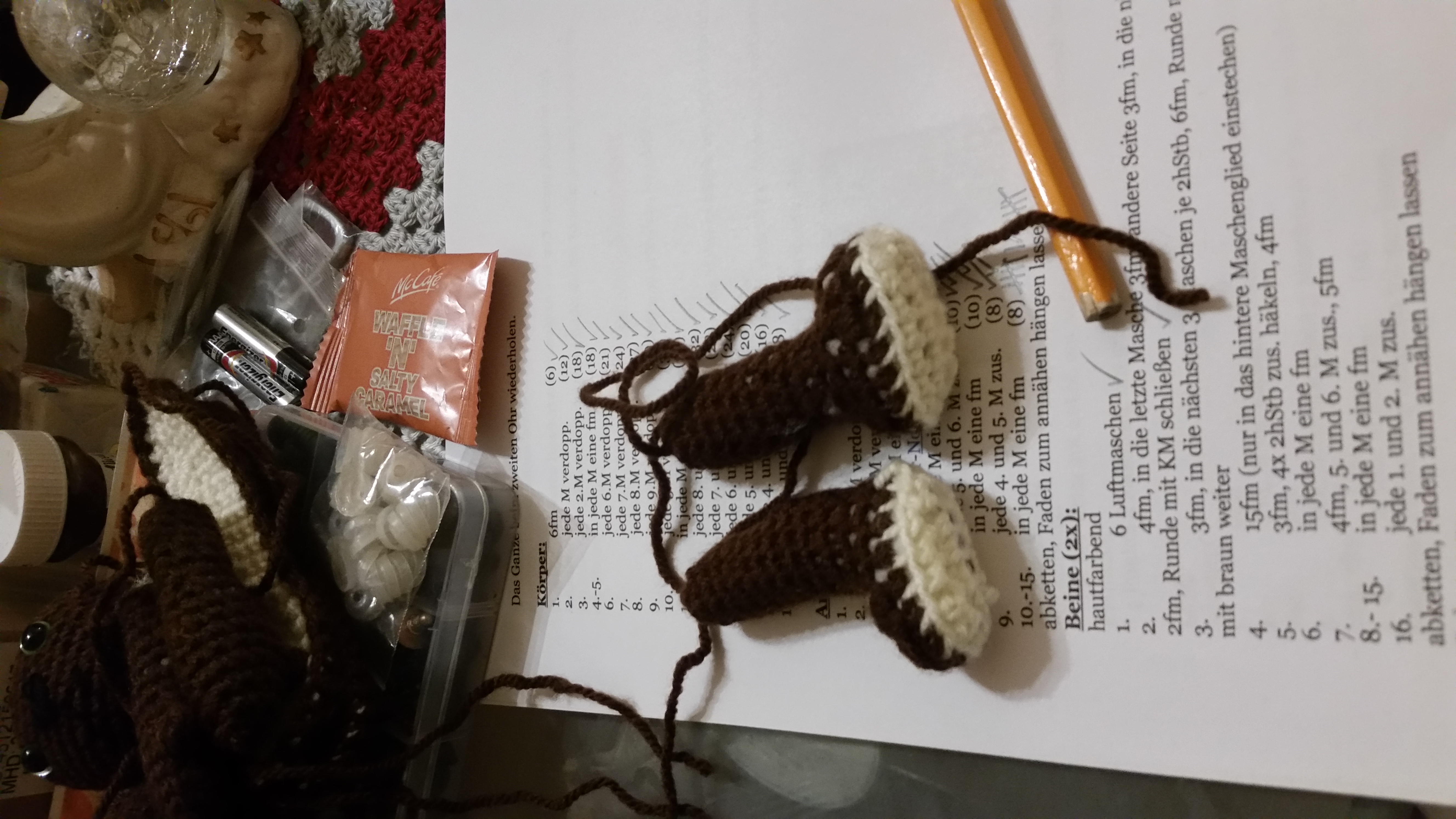 These are the parts for the Easter Bunny. It's made of single crochet stitches, a very easy pattern.
