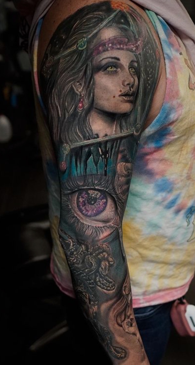 That day I realized that what I wanted the most in the world was to make tattoos and from that moment my life was marked. Fortunately I grew up with a talent that I didn’t learn from school, since I was a kid I painted and made art, though I did enter a drawing school later on to acquire some techniques and knowledge.