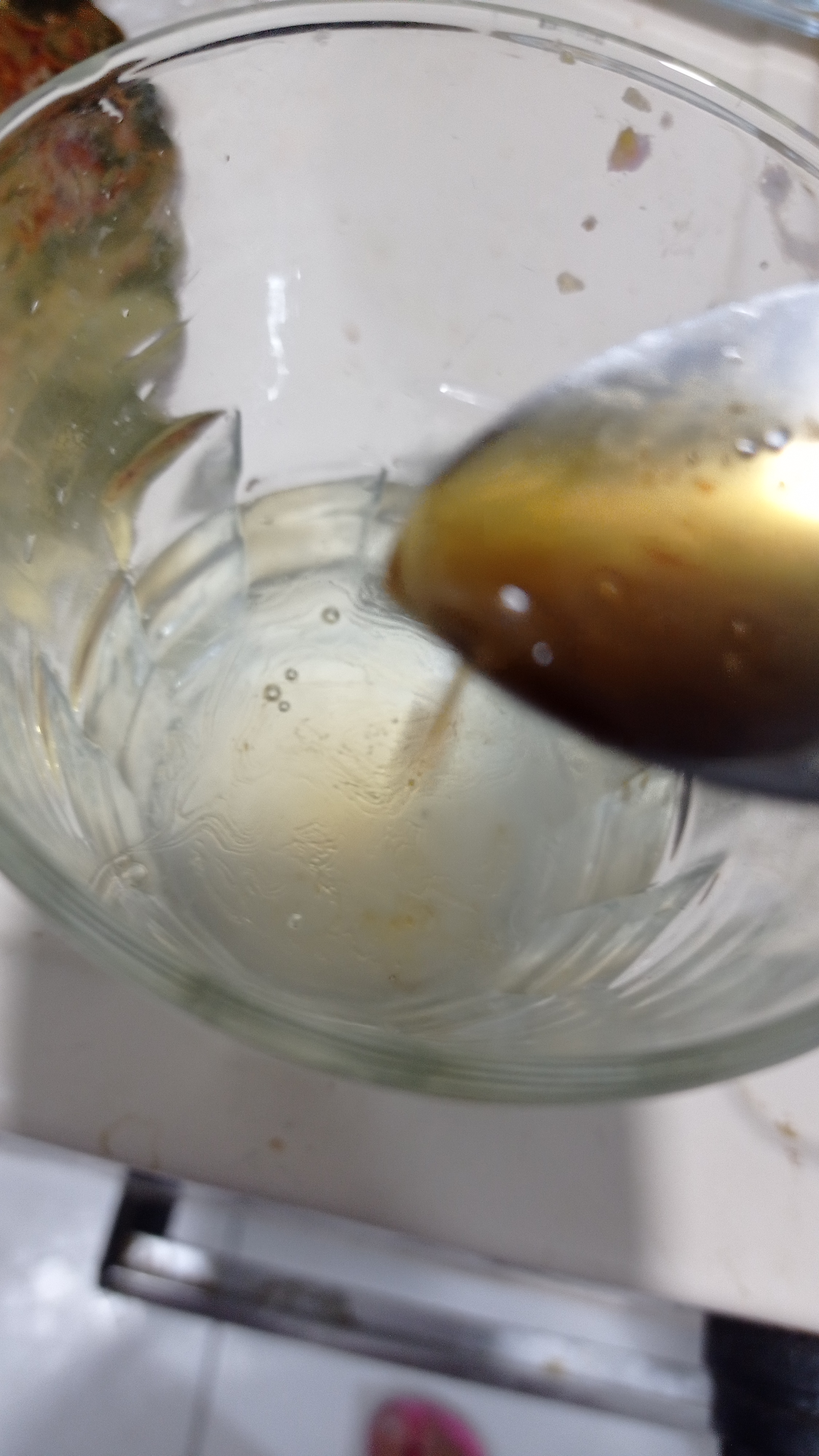 Para esto llenaremos un vaso con agua , y le añadiremos una pequeña parte de la mezcla.