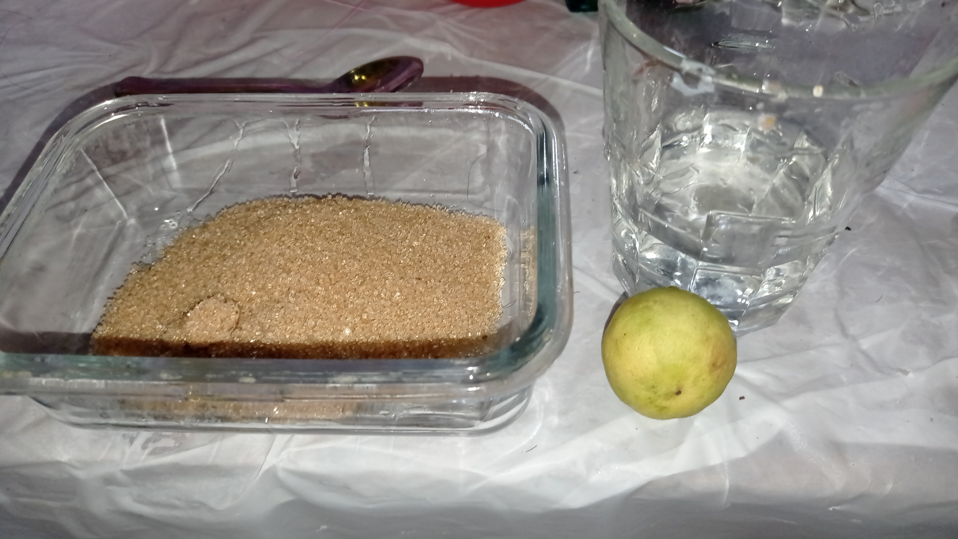 Juntamos la azúcar con el agua , cortamos el limón y lo exprimimos , (mezclar bien antes de prender fuego) para que el azúcar se diluya lo más que pueda y de este modo no queden grumos , y nuestra cera sea más fuerte.