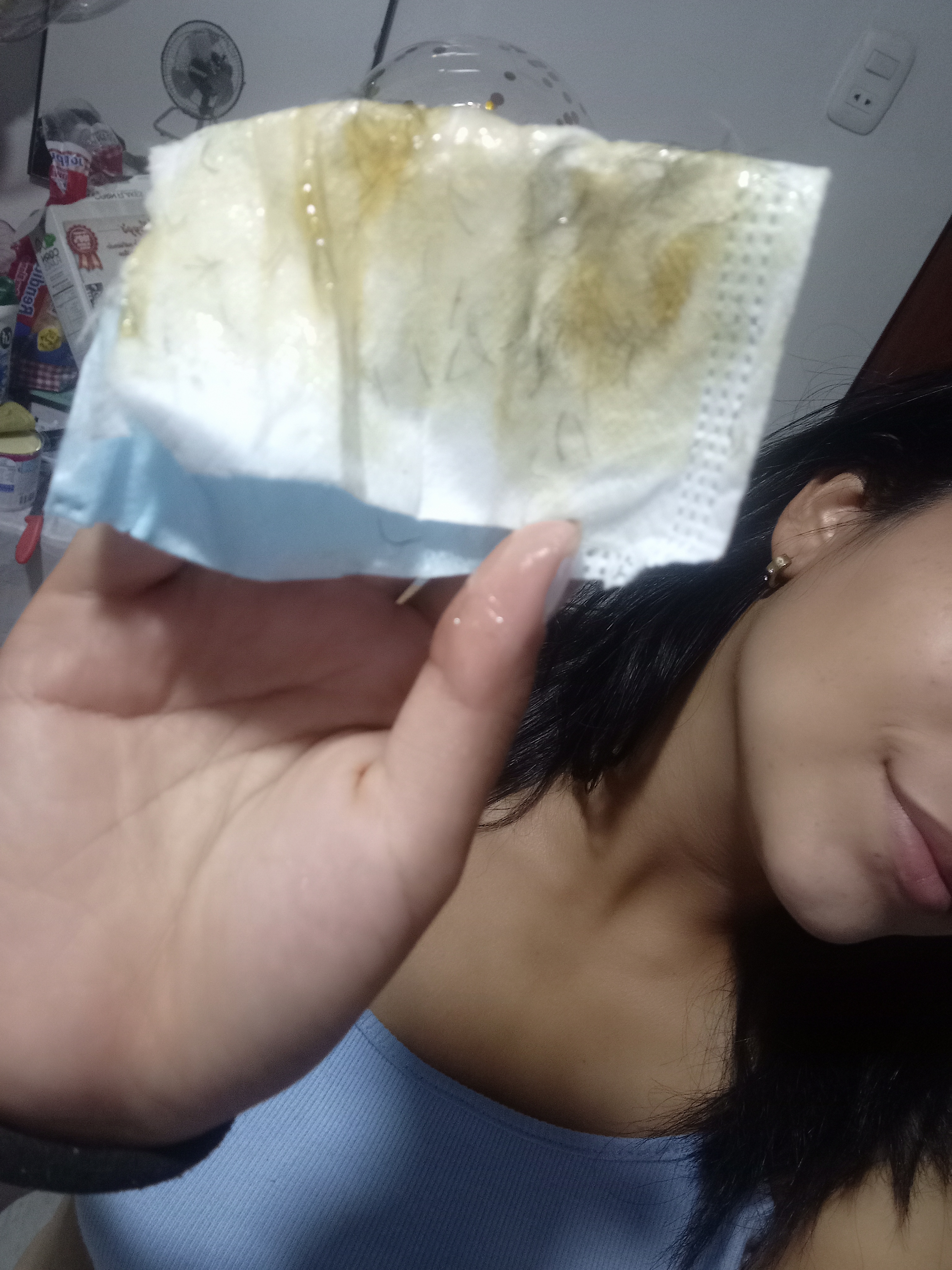 Si no tenemos las bandas especiales para depilar , podemos sustituir por trozos de tela rígida , o aprovechando la pandemia podemos utilizar casi cualquier tela de tapabocas y nos va a funcionar.😁