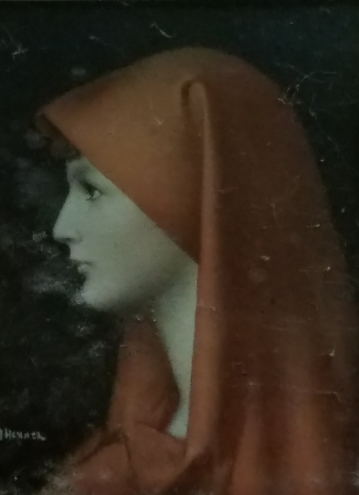 I quickly turned my head. The sofa was against a wall, so the only thing looking at me was a painting of a girl in a veil.