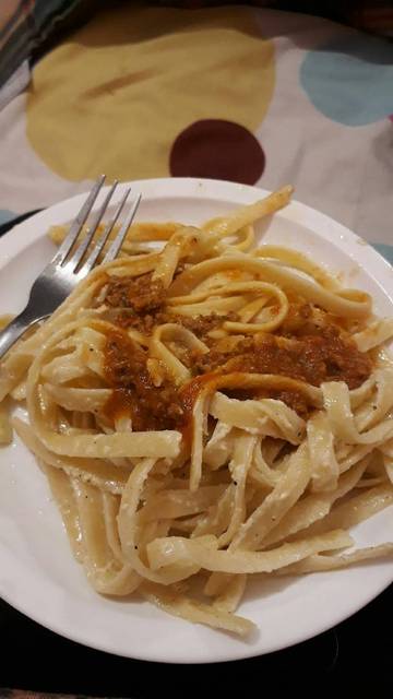 Mi comida favorita es la pasta a la boloñesa, también me fascinan los postres y mi comida chatarra favorita es el Dorito.
