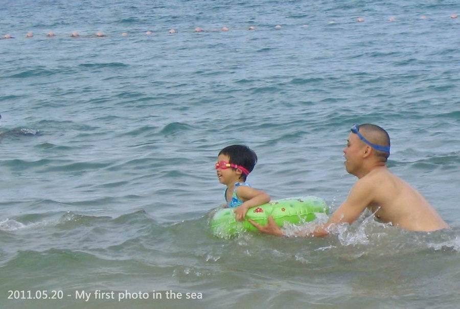 My favourite sport is swimming. I started swimming when I was 4 years old. This is my first photo in the sea, the life ring is my best friend at that time. :-)