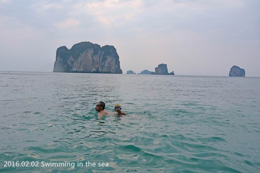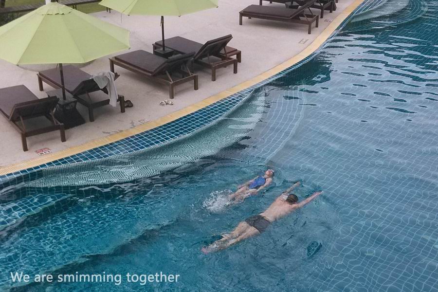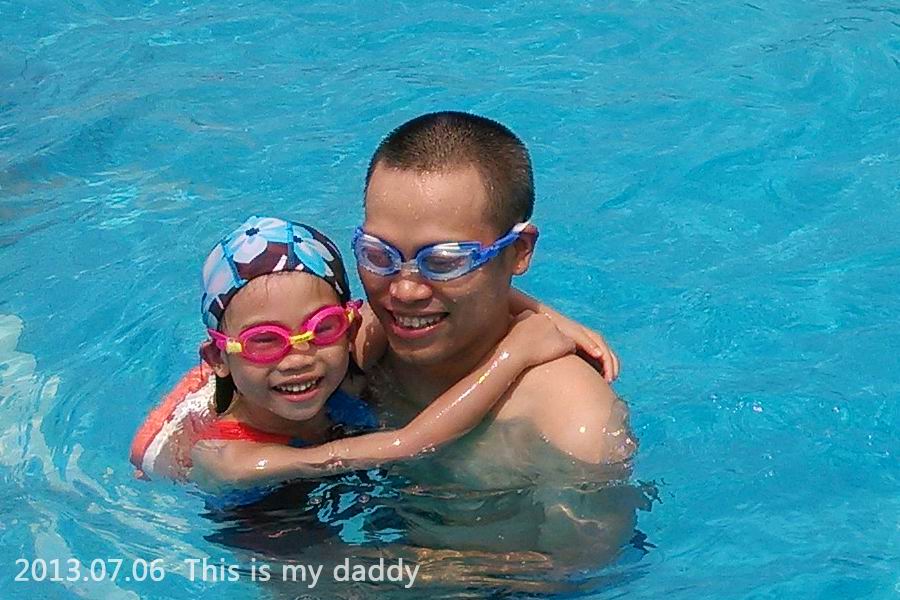 My daddy is very good at swimming, look, we are swimming together. I love my daddy.