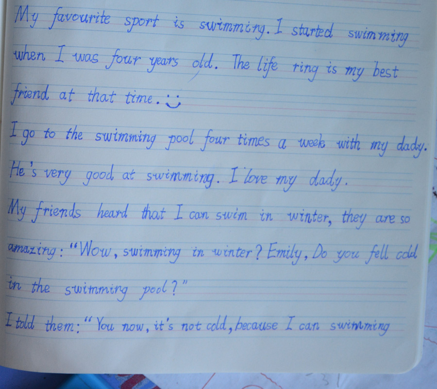 My friends heard that I can swim in winter, they are so amazing: “Wow, Swimming in winter? Emily, Do you fell cold in the swimming pool? “
