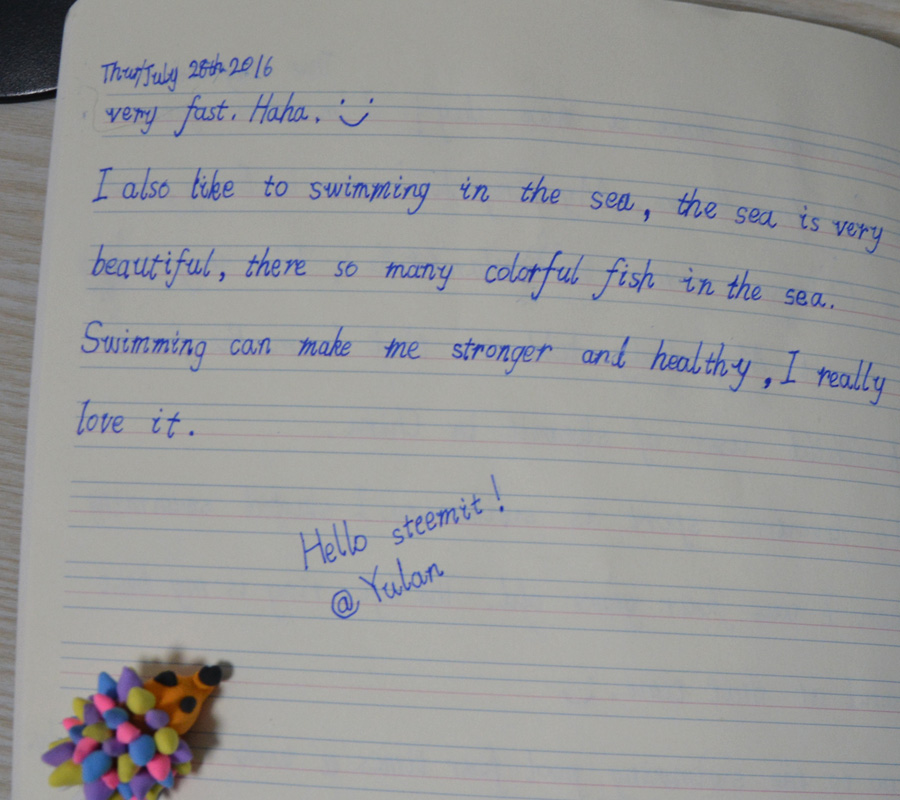 I also like to swimming in the sea,the sea is very beautiful, there are many colorful fish in the sea.
