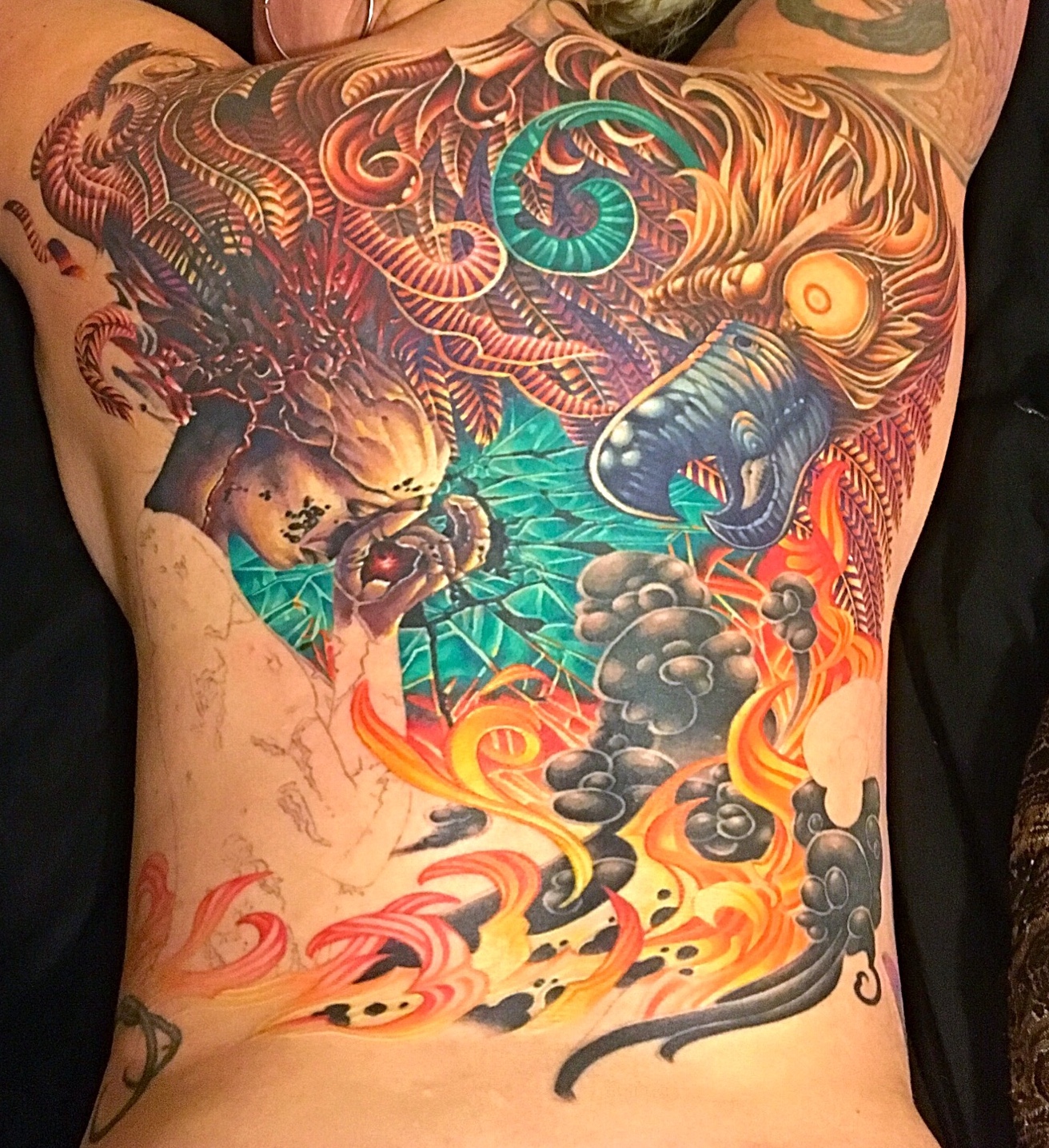 I love tattoos, I love being a canvas. Currently working on my back piece.